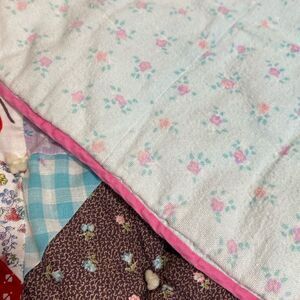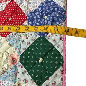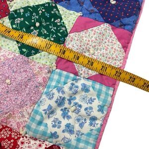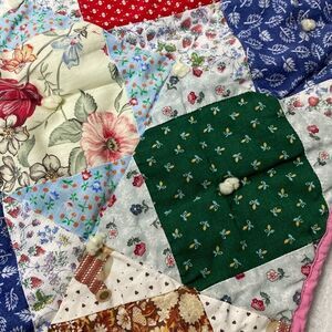 Charming quilt with a mix of vibrant patterns. Ideal for a cozy decorator touch. Vibrant quilt for dolls, baby, table centerpiece, or general decor. Handmade, many vintage fabrics used.