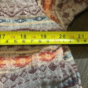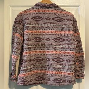 Stylish button-up shirt with a multicolor pattern. Features a mix of purple, orange, and cream tones. Perfect for casual wear. Very heavy, soft cotton please refer to measurements.