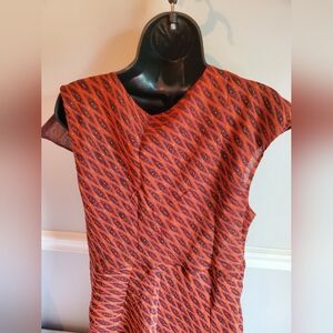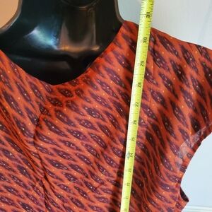 Vibrant top with intricate patterns in red, orange, and purple. Perfect for a bold statement. 0037
