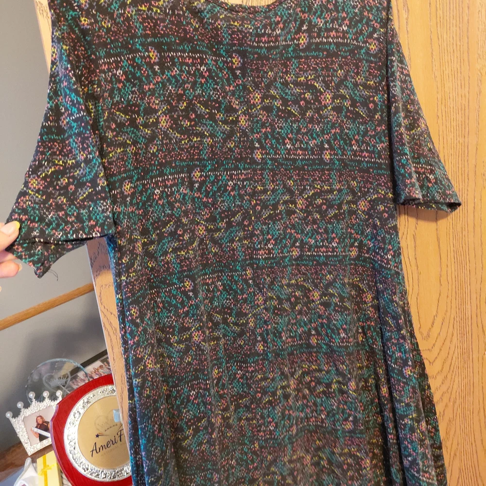 Stylish multicolor drtop with a vibrant pattern. Features short sleeves and a flowing design.