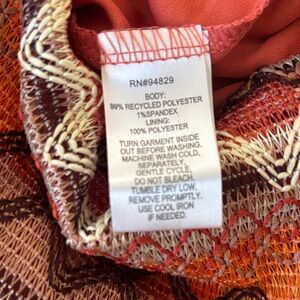 This stylish women's dress features a vibrant multicolor pattern, perfect for any occasion. The dress combines shades of orange, brown , and cream, creating a unique and eye-catching look. Adjustable straps. Has stretch pit to pit 13” but can stretch to 15”