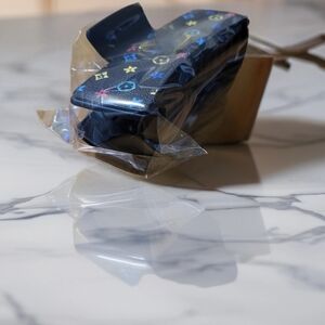 Stylish hair clip with a multicolor pattern. Features blue, yellow, red, and pink accents.
