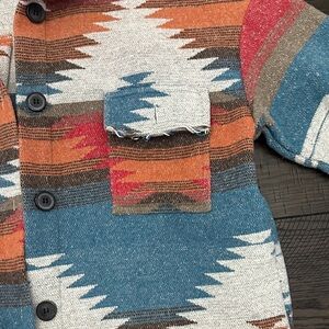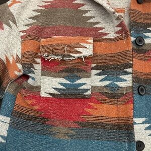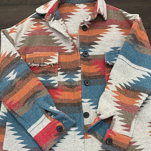Stylish jacket featuring a vibrant multicolor pattern. Perfect for adding a pop of color to any outfit.