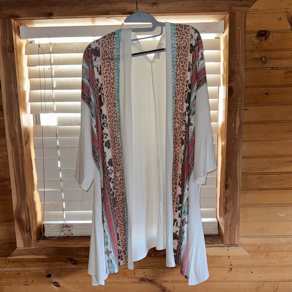 Elevate your style with this chic multicolor patterned kimono cardigan. Perfect for layering, this piece adds a vibrant touch to any outfit.