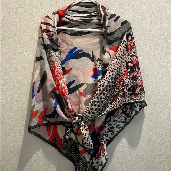 Elevate your style with this vibrant multicolor patterned scarf. Perfect for adding a splash of color to any outfit.