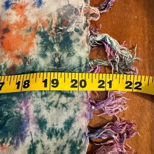 Elevate your style with this vibrant multicolor patterned scarf. Perfect for adding a splash of color to any outfit. Wear it as a swim suit cover. It’s 32 inches long and 20 inches wide. In perfect condition from a smoke free home.