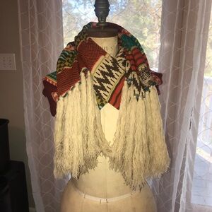 Add a cozy and warm touch to complete your outfit with this multicolor patterned scarf with long fringe detailing!
