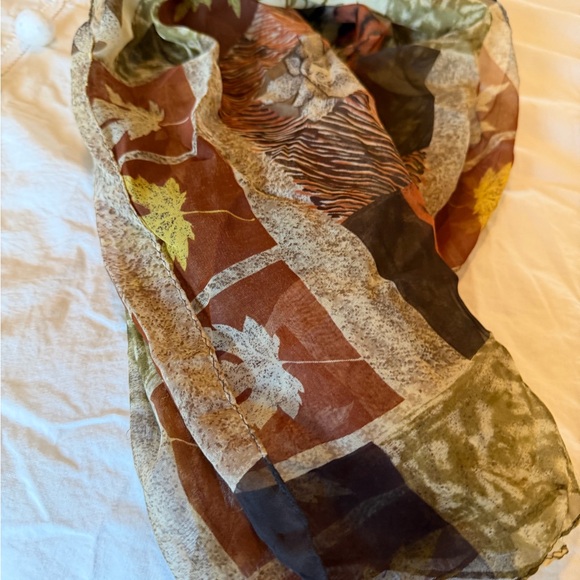 Add a touch of elegance to your outfit with this multicolor patterned scarf. Featuring shades of brown, green, and beige it's perfect for any occasion.
