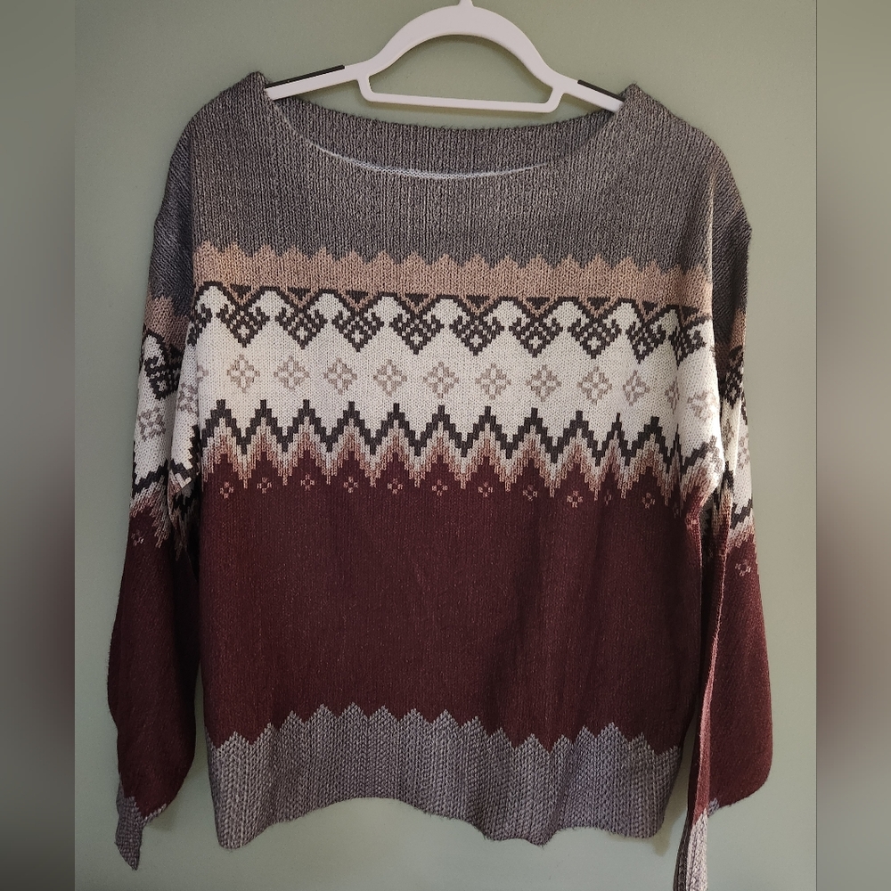 Stay cozy and stylish with this beautifully patterned sweater. This is a very lightweight sweater.