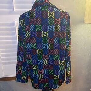 Stand out with this vibrant multicolor patterned men's suit. Perfect for making a bold statement at any event.