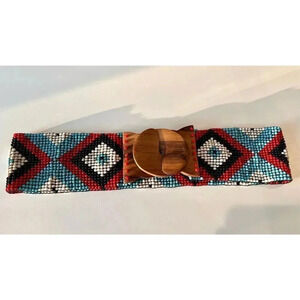 Elevate your style with this vibrant multicolor patterned belt. Perfect for adding a pop of color to any outfit.