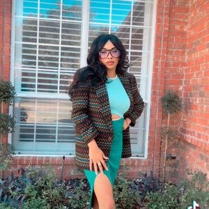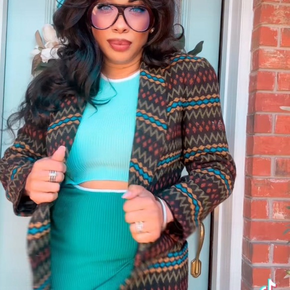Elevate your wardrobe with this chic multicolor patterned jacket. Perfect for adding a pop of color to any outfit.