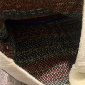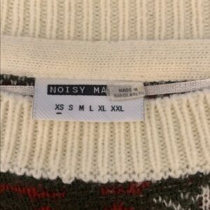 Stay cozy and stylish with this multicolor patterned sweater. Featuring a blend of red, blue, black, and cream, this sweater is perfect for any casual outing.