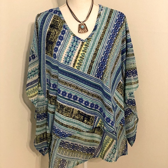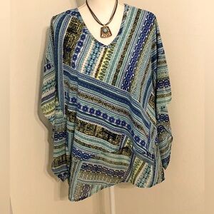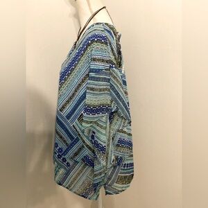 Stylish and vibrant, this multicolor patterned top is perfect for any occasion. The blend of blue and green hues adds a fresh touch to your wardrobe.