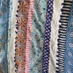 Enhance your bedroom with this vibrant multicolor patterned quilt. Featuring a blend of blue, pink, and orange hues, this quilt adds a touch of elegance and warmth to any space.