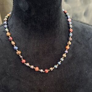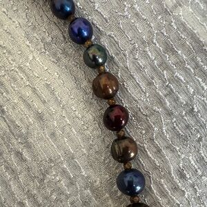 Elegant multicolor pearl necklace featuring a blend of vibrant hues. Perfect for adding a touch of sophistication to any outfit.