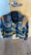 Stylish multicolor plaid jacket with button closure. Features shades of blue, yellow, and orange.