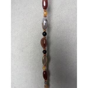 Beautiful long beaded necklace featuring polished multicolor stone beads. Adds a natural, boho touch to any outfit—perfect for layering or wearing as a statement piece.
