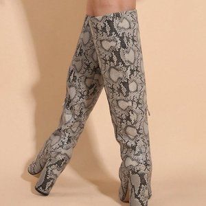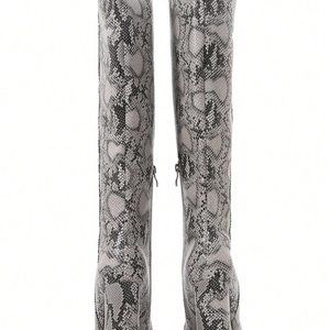 Multicolor Preppy Womens Ladies Fashion Boots Snake Print Chunky Heel Boots