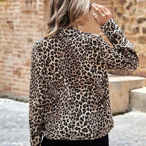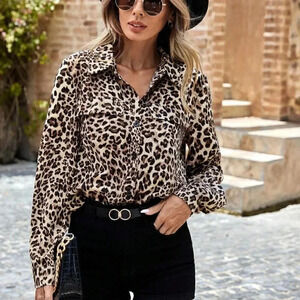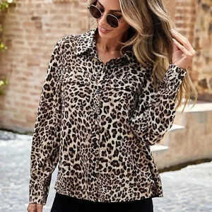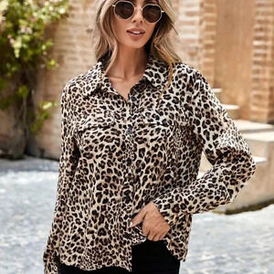 Multicolor Preppy Womens Leopard Print Flap Detail Button Front Shirt