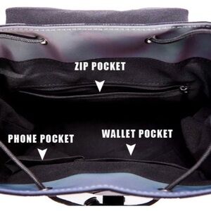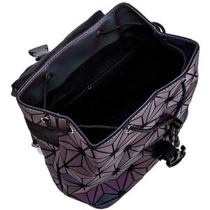 -Sacred geometric stylish design. The color of the backpack changes on the light setting. The primary color is purple (no flash). With flash, the backpack reflects a variety of luminous colors.