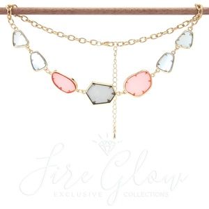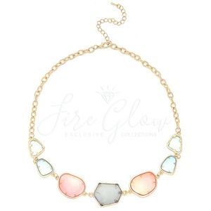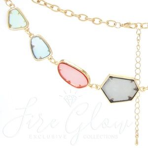 MATCHING EARRINGS AVAILABLE! This trendy, stylish, Chic casual necklace features a gorgeous Gold tone chain and a multicolored resin 7 Pendant design (Greenish, Blueish, Redish, Gray). Beautifully made and very high quality. This versatile necklace is perfect to dress up or down. Pair with your favorite cocktail dress, casual skinny jeans or wear to work. Bundle to save/Fast shipping offered. MATCHING EARRINGS AVAILABLE!