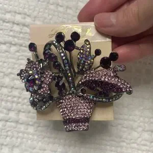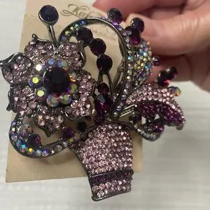 Elegant Kirt Folly brooch that is extremely rare with multicolor rhinestones. Features floral design with sparkling accents. Large and in charge absolutely gorgeous new never worn still in original bag. So very shiny and if I’m not mistaken, they are made with Swarovski Crystals.