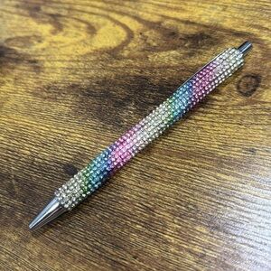 Sparkling pen adorned with multicolor rhinestones. Perfect for adding a touch of glam to your writing.