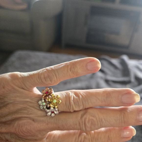 multicolored petite flowers set in silver tone bands. 3 bands are