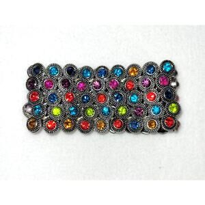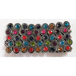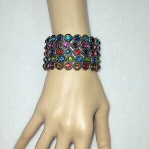 Multicolor Rivoli Crystal Stretch Bracelet Wide Statement Boho Glam Art Deco
