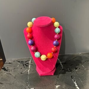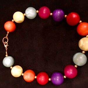Gorgeous multicolor necklace of resin round beads linked with small gold accents between each bead. Pre-owned and in great condition.