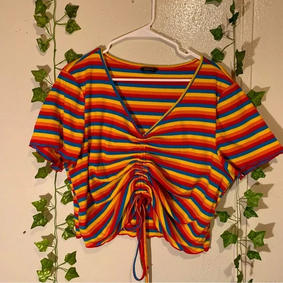 Multicolor Ruched Drawstring Top