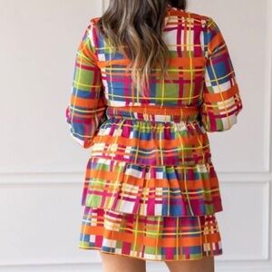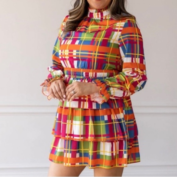 This adorable multicolored high neck dress is perfect to wear yourself or to give as a gift.