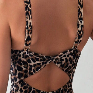 Multicolor Sexy Women's Beach Leopard Print Round Ring Cutout One-Piece Swimsuit