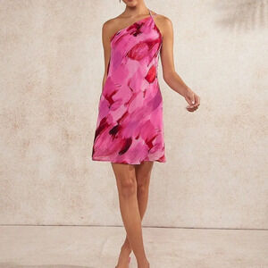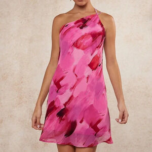 Multicolor Sexy Women's Brush Print Draped Open Back Dress