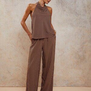 Multicolor Sexy Women's Elegant Resort Striped Halter top and pants 2 piece Set