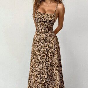 Multicolor Sexy Women's Leopard Print Backless Strappy Swing Dress