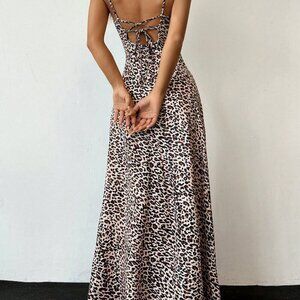 Multicolor Sexy Women's Leopard Print Backless Strappy Swing Dress