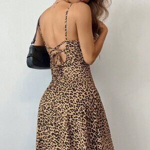 Multicolor Sexy Women's Leopard Print Backless Strappy Swing Dress