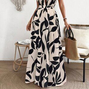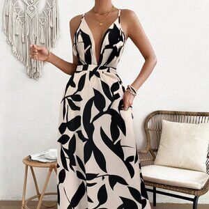 Multicolor Sexy Women's Spaghetti Strap Backless Allover Printed Beach Dress