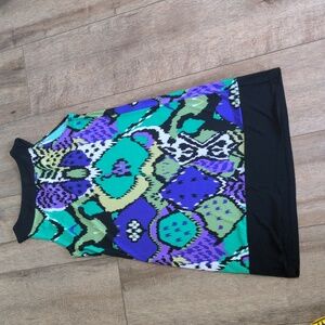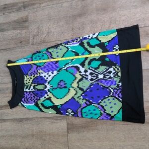 like new condition, no defects. size PS. measures approximately 32 in long. 95% polyester, 5% spandex. smoke-free home. Make an offer, bundle to save, feel free to ask any questions. Vibrant sleeveless dress featuring a bold multicolor pattern. Perfect for making a statement.