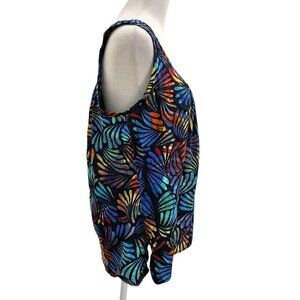 Vibrant and stylish, this multicolor sleeveless top is perfect for any occasion. The bold pattern adds a touch of flair to your wardrobe.