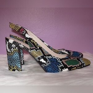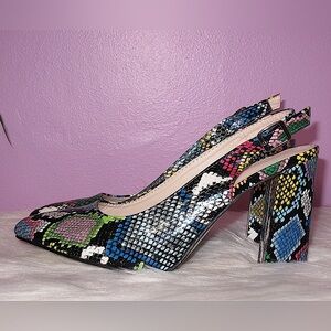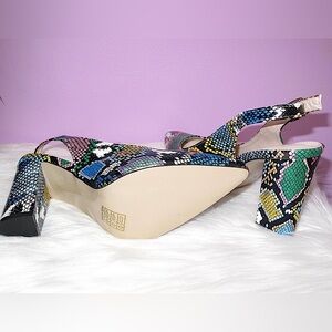 Multicolor Snakeskin Slingback Heels & Matching Round Bag Set