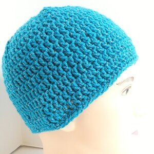 It is made with a Cotton/Acrylic/Metallic yarn that I crocheted in loose knit crochet stitches. This makes for an easy to care for wrap.