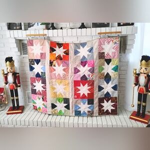 Gently used but very great condition! Enhance your bedroom with this stunning multicolor star pattern quilt. Its vibrant design brings warmth and style to your home. Pet, bug and smoke free home.