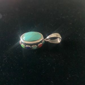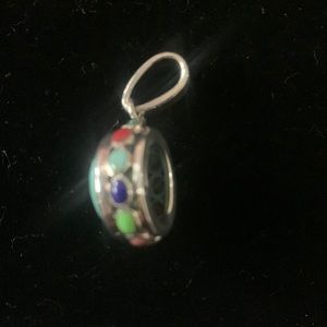 Multi stone sterling silver pendant measures approx 1.5cm hanging length.