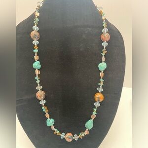 Multicolor Stone/Beaded Necklace with faux turquoise and tiger eye