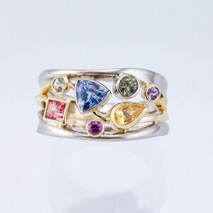 💎 Multicolor Stones Zircon Stackable Cross Fashion Rings for Women, PD217