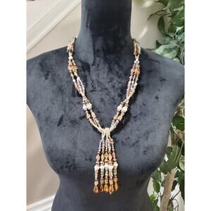 Multicolor Strand Knotted Mixed Beads Fashion Statement Long Necklace
