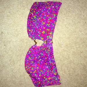 Multicolor Strapless Swim Top With Heart In Middle